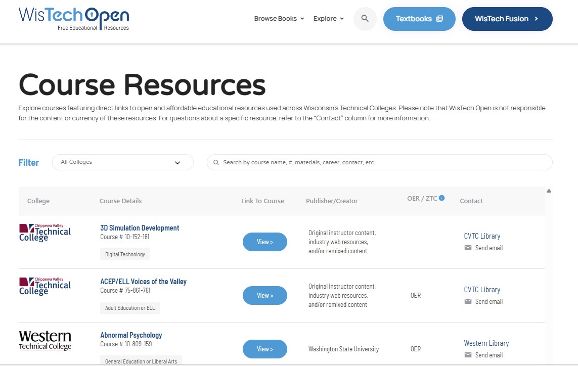 Explore the Course Resources repository to find hundreds of open and affordable materials used across Wisconsin’s technical colleges: wistechopen.org/course-resources